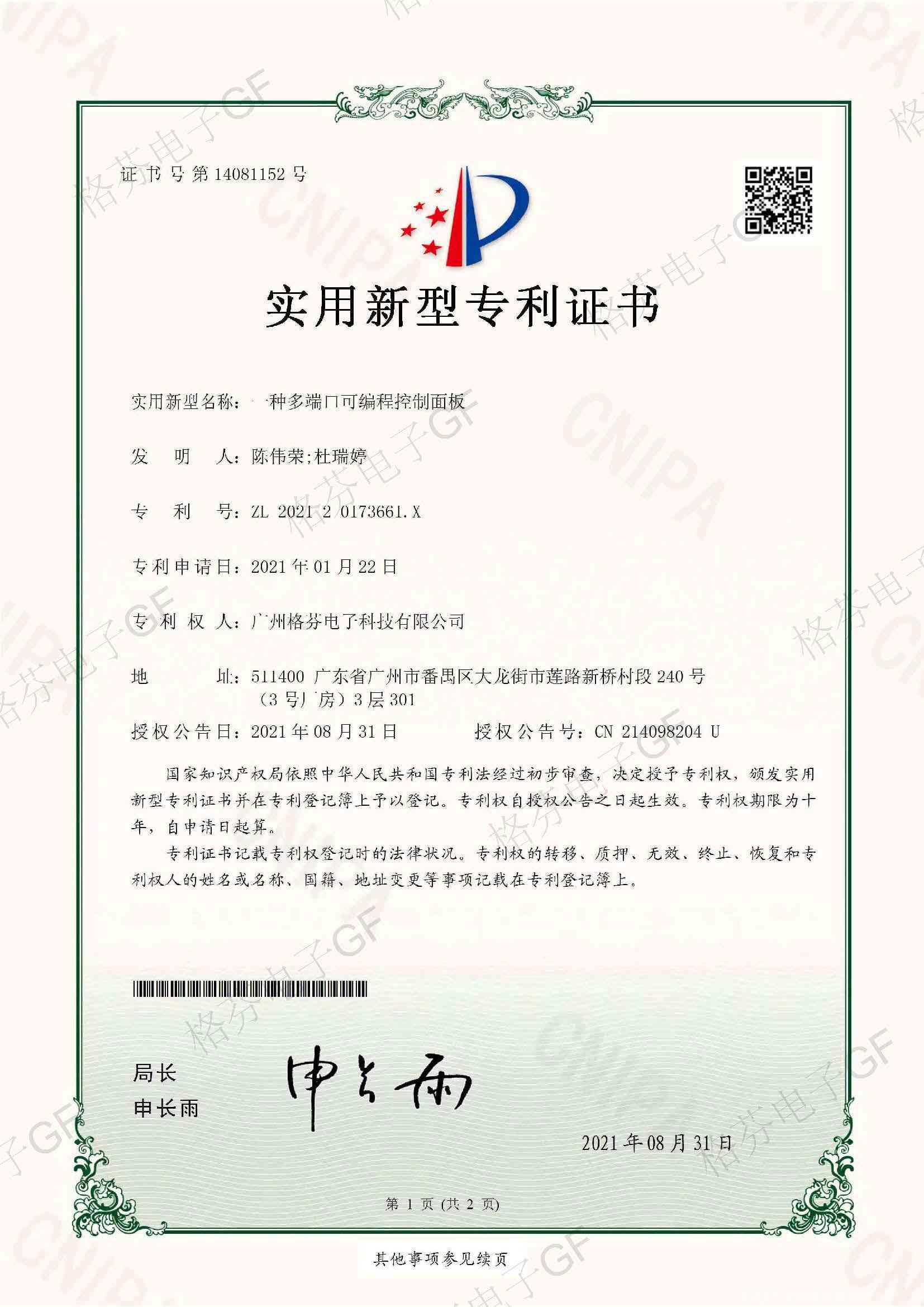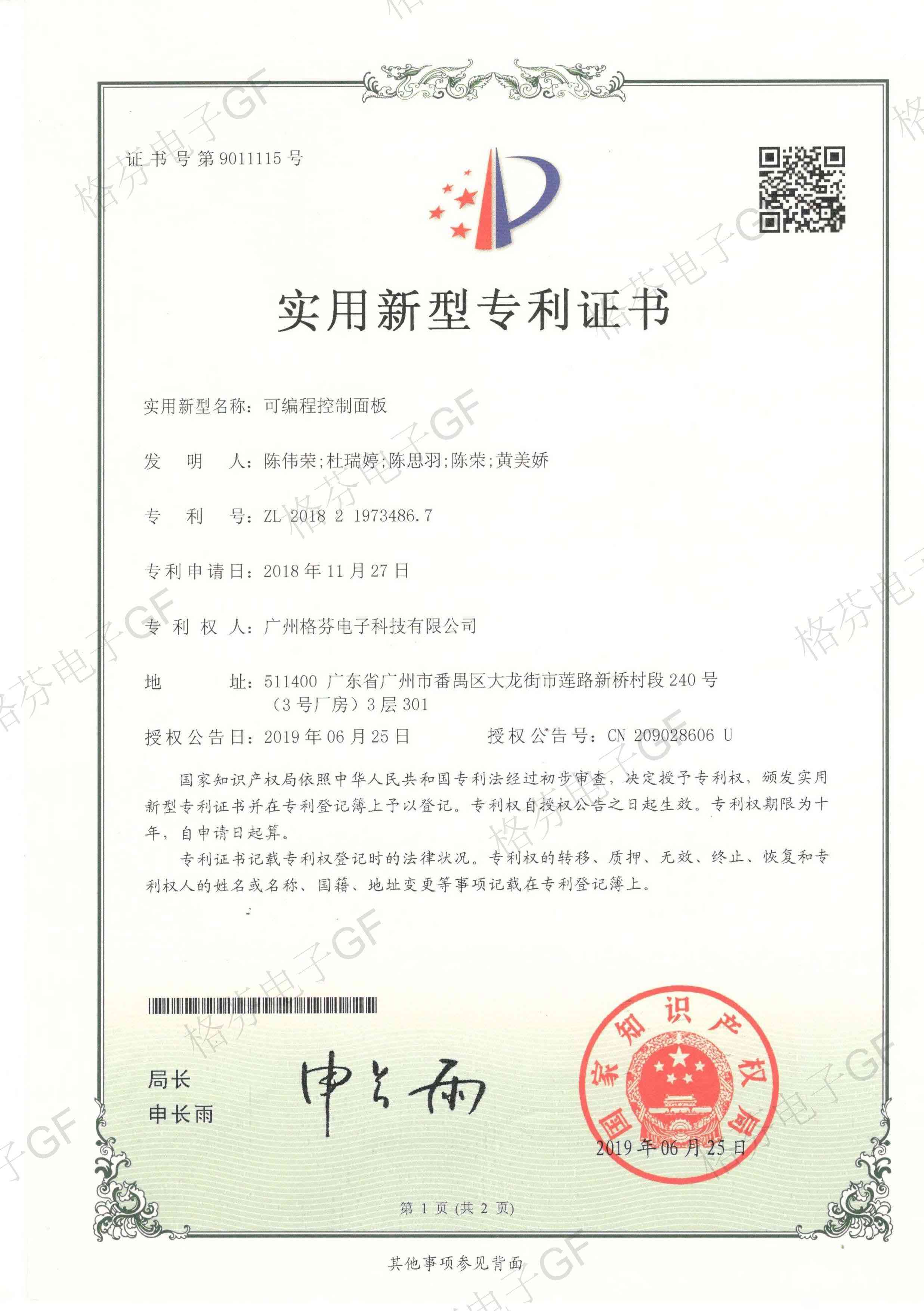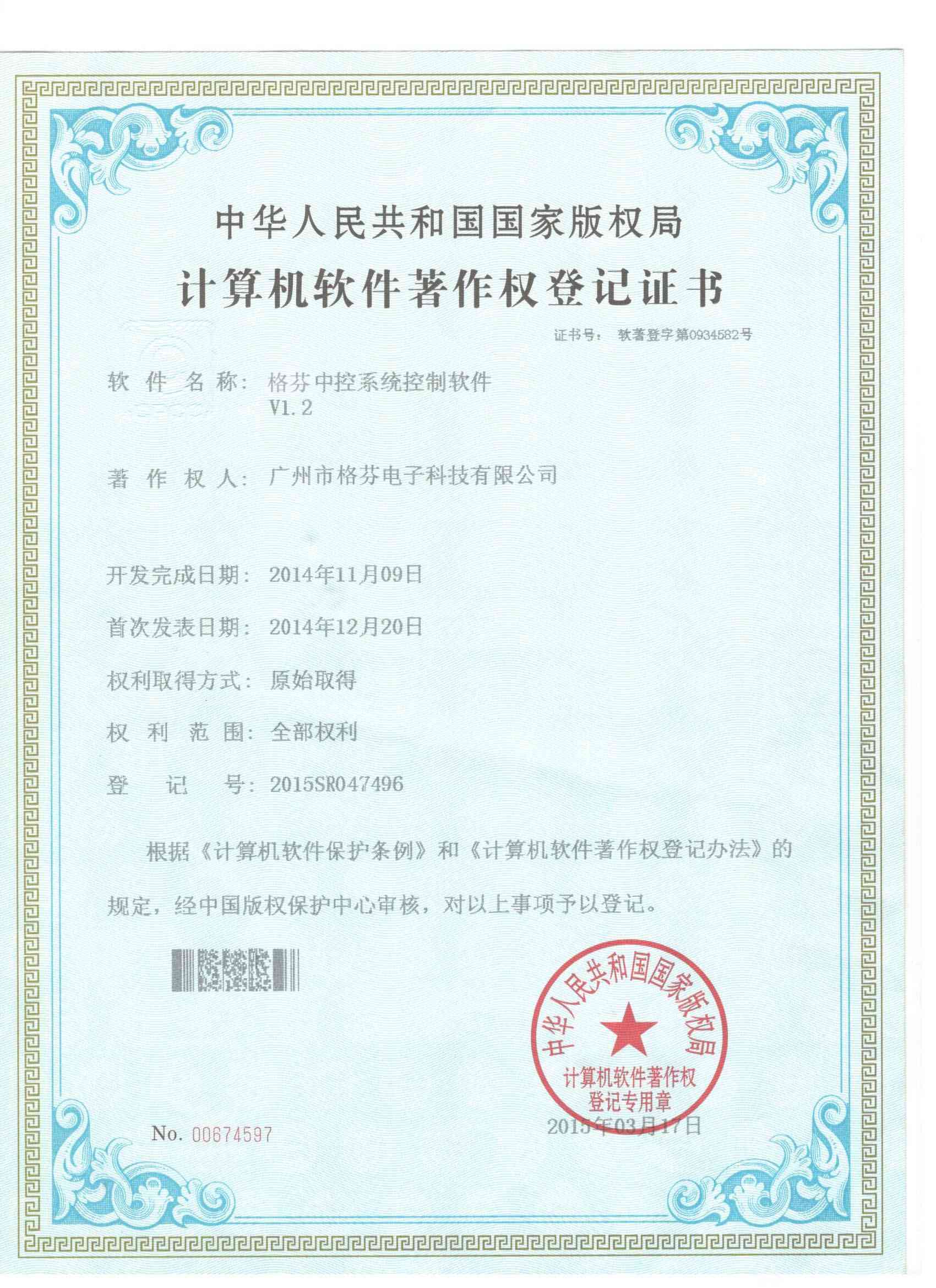 格芬中控系統(tǒng)控制軟件著作權(quán)登記