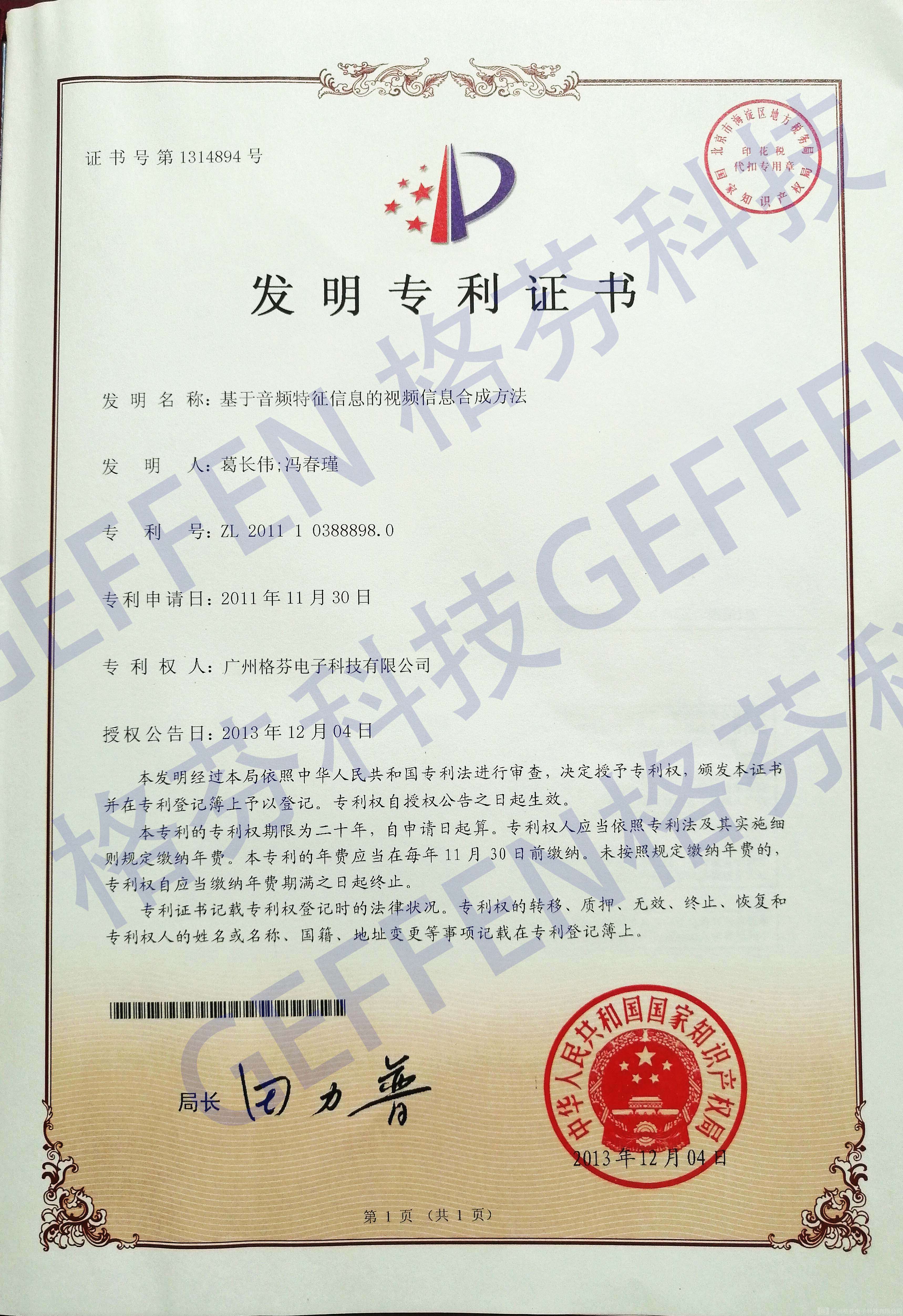 發(fā)明專利基于音頻特征信息的視頻信息合成方法