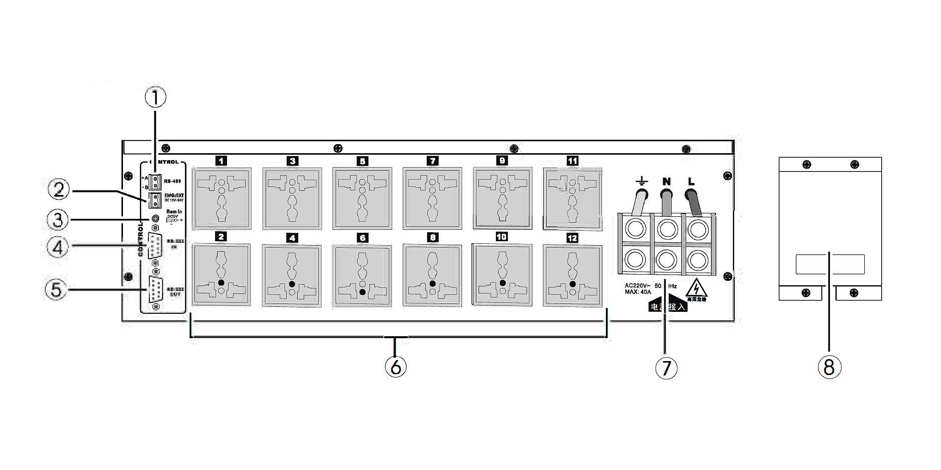 ●12路供電輸出,每路輸出AC220V(10A)采用萬能插座,適用各種類型插頭。