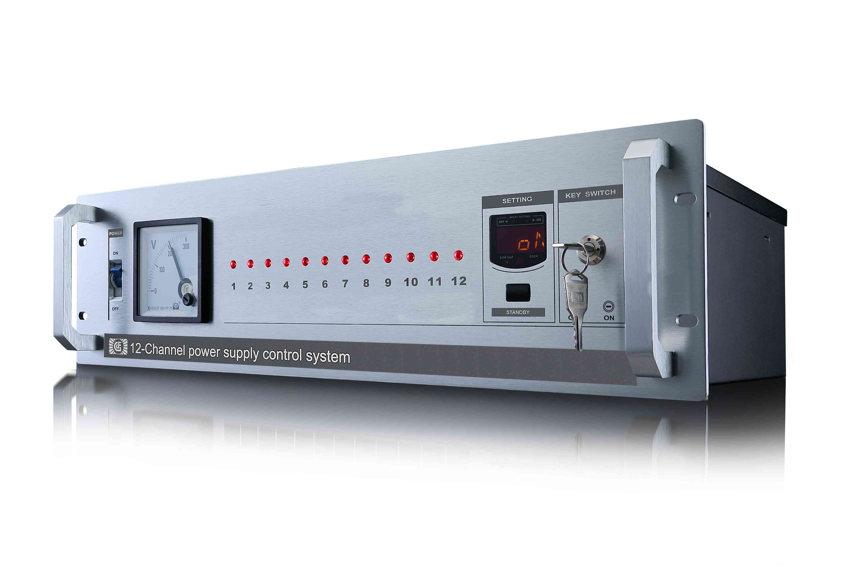 整機(jī)配置空氣開關(guān)及電壓表頭。設(shè)計(jì)容量10KVA。大型接線端子接入,配保護(hù)罩。保證系統(tǒng)的供電安全。12路電源時(shí)序控制,每路輸出AC220V(10A)采用萬能插座,適用各種類型插頭??煽康蔫€匙鎖控制。