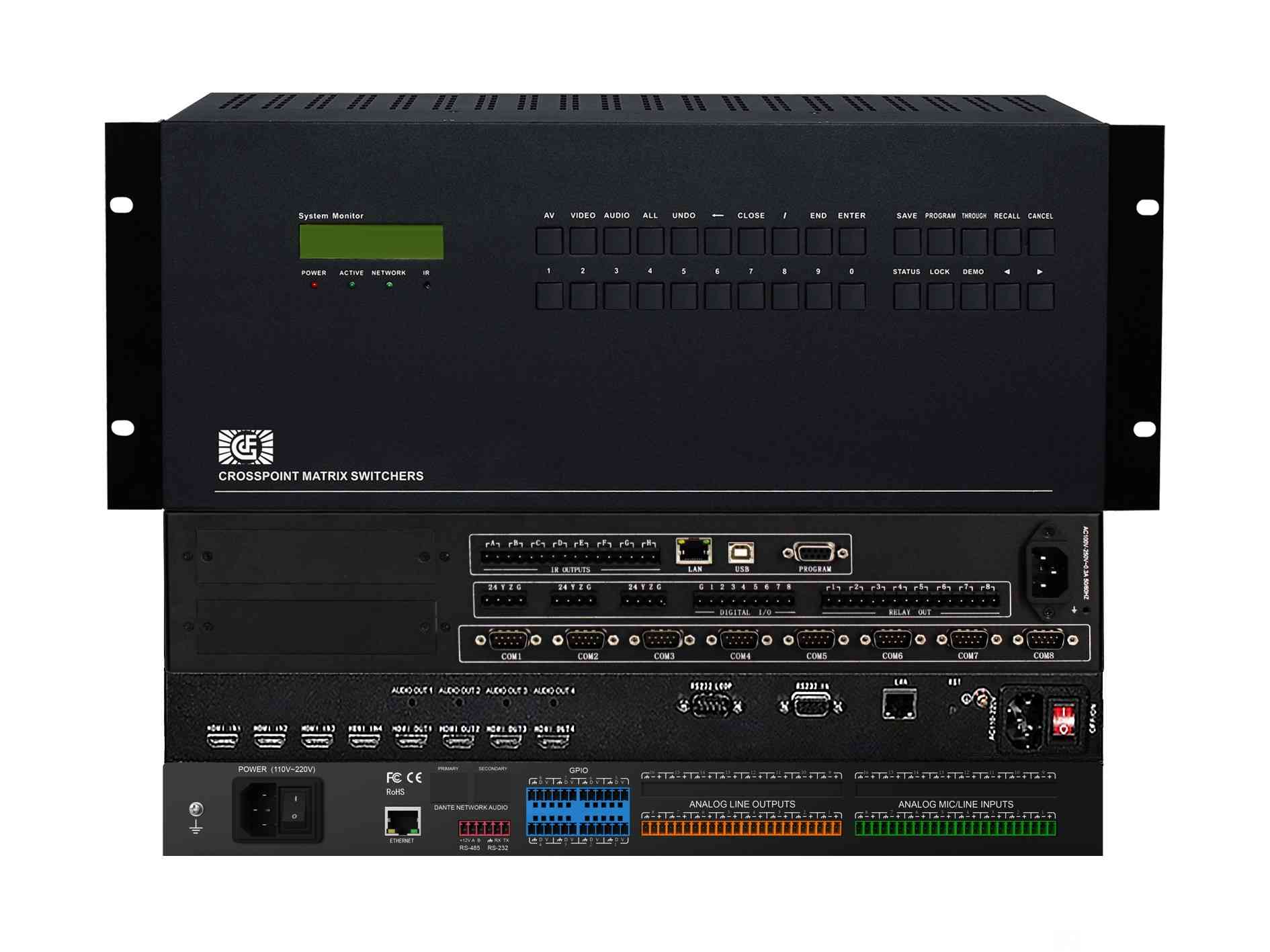 高度集成化:將中控系統(tǒng)、音頻矩陣和視頻矩陣功能集成于一體,大大簡化了系統(tǒng)結(jié)構(gòu)和布線復(fù)雜度,降低了安裝和維護(hù)成本。