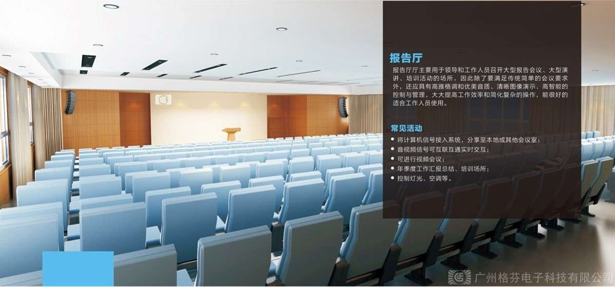 6、整體方案實現(xiàn)主要用于接待、新聞發(fā)布、召開大型會議、學(xué)術(shù)報告,同時具備具備文藝演出節(jié)目功能。