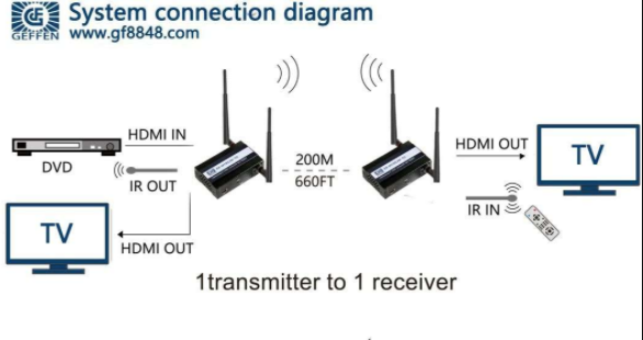 ●紅外回控功能:注意將延長器發(fā)射端的紅外頭, 對(duì)準(zhǔn)并靠近需要控制的信號(hào)源紅外接收端
