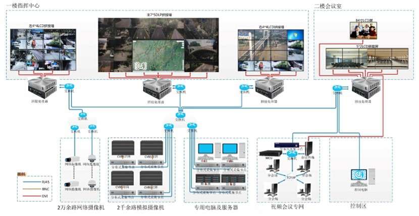 情報(bào)研判室、值班室、機(jī)房等節(jié)點(diǎn)在指揮中心的距離遠(yuǎn)近不一;信號類型也各不相同;這樣要求視頻管理平臺要具備各類高標(biāo)清信號的不同距離傳輸?shù)慕鉀Q方法,同時(shí)要滿足各類不同信號的同時(shí)接入與輸出。