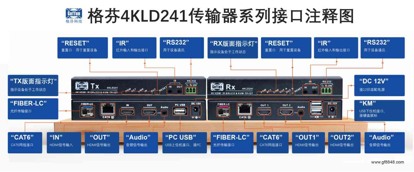 ●TX端1路HDMI輸入,1路HDMI環(huán)出,1路模擬音頻輸出