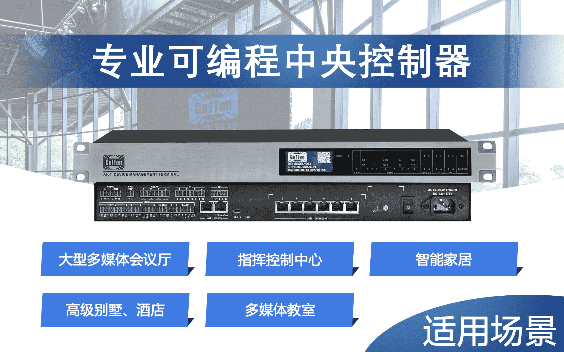 可編程中控系統(tǒng)GF-MAXCC采用分布式架構(gòu)設(shè)計(jì),核心由中央控制主機(jī)、信號(hào)輸入設(shè)備、執(zhí)行終端及軟件平臺(tái)四部分組成,各模塊通過(guò)有線與無(wú)線結(jié)合的方式實(shí)現(xiàn)協(xié)同工作。