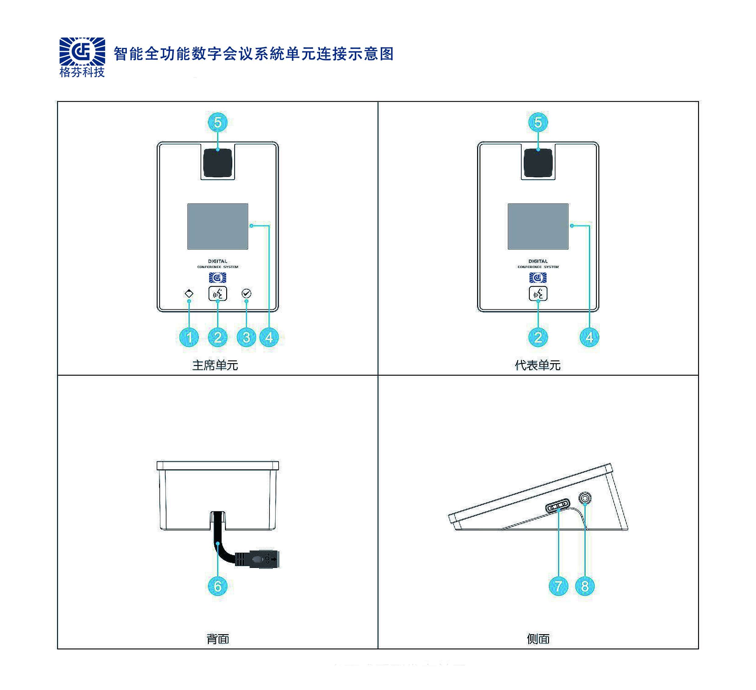 主席單元:按下此鍵可直接開關(guān)話筒,當(dāng)話筒開啟時,話筒指示燈圈紅燈恒亮;