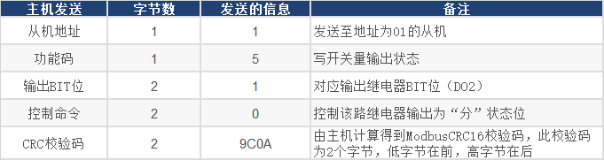 例1:開關(guān)量輸出點DO1,其當(dāng)前狀態(tài)為“分”,主機要控制該路繼電器“合”。