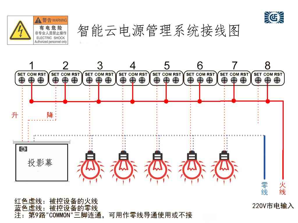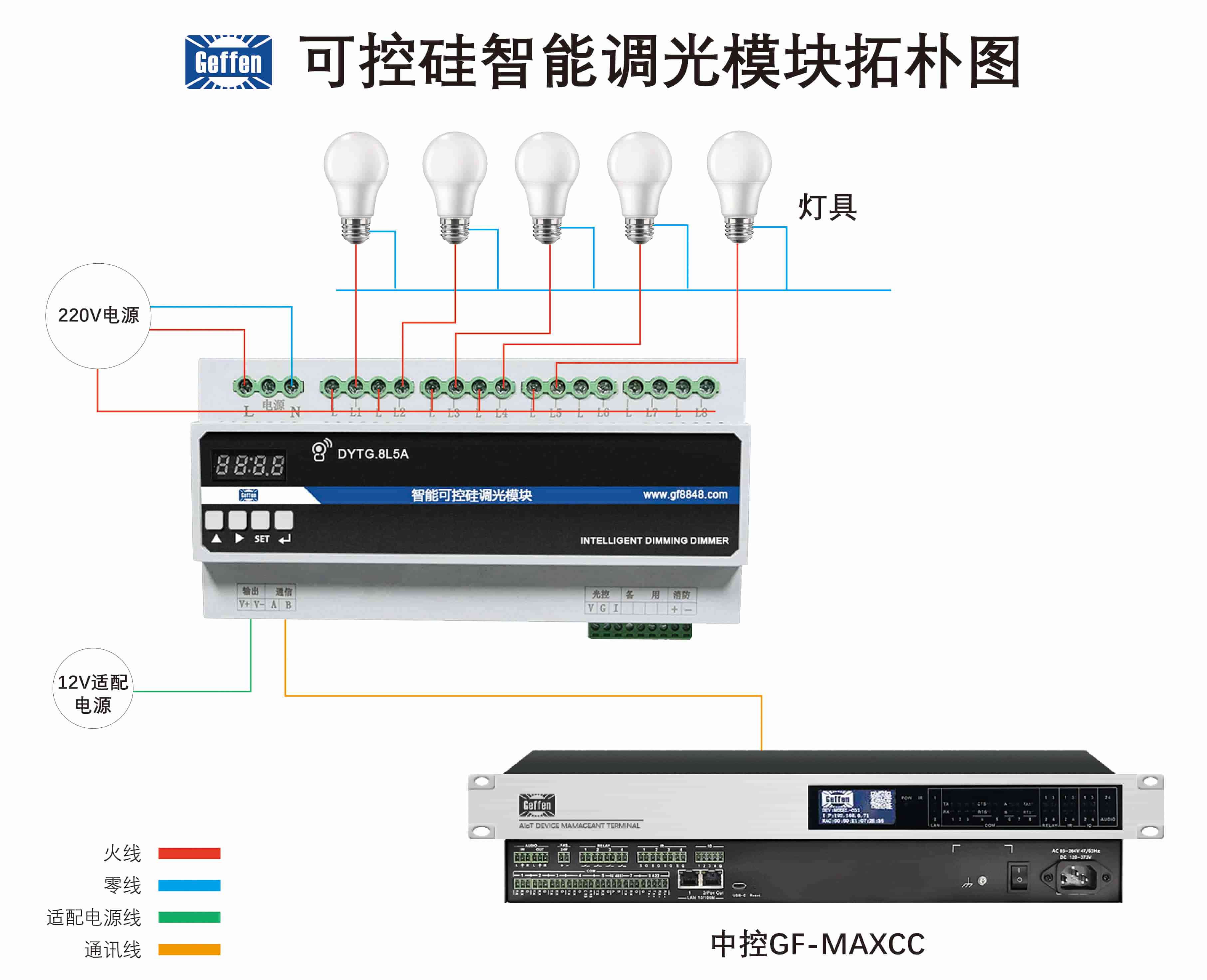 有4路繼電器輸出控制,每回路單獨控制6600W照明設備的開關,具有每一路的手動控制開關,每個開關量信號可以定義3種模式,分別是強切,強啟,開關 。采用RS485/TCP通訊,產(chǎn)品之間需手拉手的方式連接。
