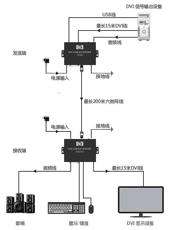 使用DVI標(biāo)準(zhǔn)線纜,輸入/輸出傳輸距離可達(dá)15米;