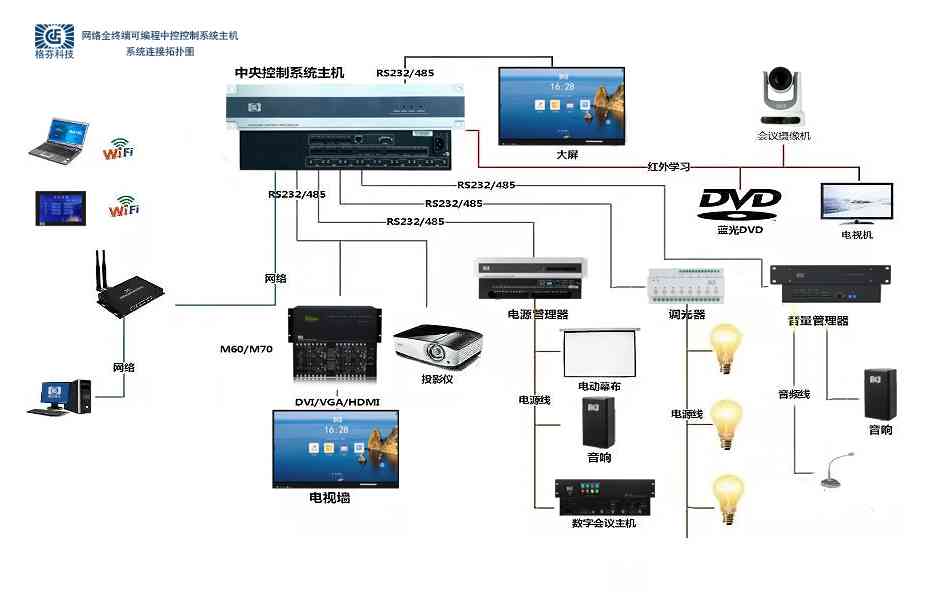 格芬網(wǎng)絡(luò)全終端可編程中控主機(jī)系統(tǒng)連接拓?fù)鋱D