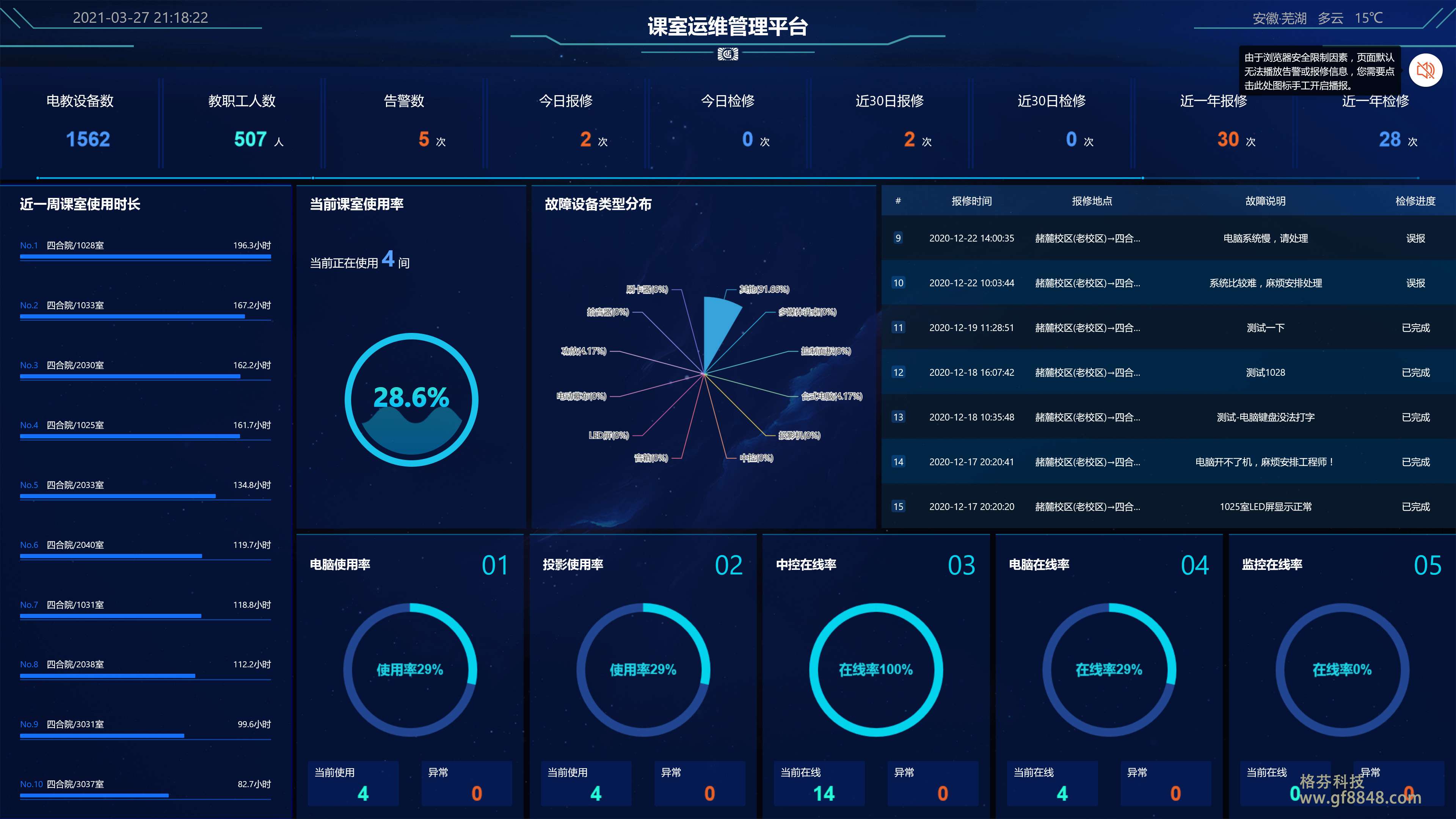 智慧校園物聯(lián)網(wǎng)管理系統(tǒng)涵蓋學(xué)校日常工作信息化管理、集控物聯(lián)、音視頻廣播、信息發(fā)布、運(yùn)維管理等,格芬將分散、異構(gòu)的應(yīng)用和信息資源進(jìn)行聚合,通過(guò)統(tǒng)一的訪(fǎng)問(wèn)入口,實(shí)現(xiàn)結(jié)構(gòu)化數(shù)據(jù)資源、非結(jié)構(gòu)化文檔和互聯(lián)網(wǎng)資源、各種應(yīng)用系統(tǒng)跨數(shù)據(jù)庫(kù)、跨系統(tǒng)平臺(tái)的無(wú)縫接入和集成,讓學(xué)校的各種業(yè)務(wù)進(jìn)行深度融合。