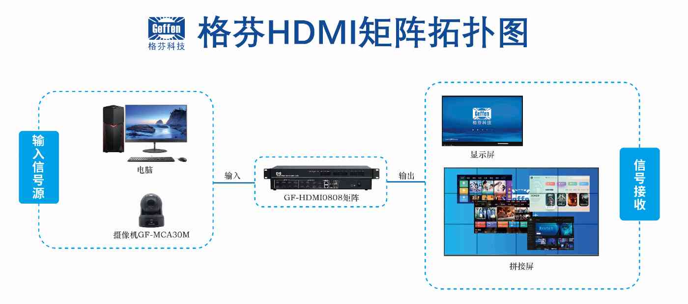 廣州格芬GF-HDMI0802/04/08是4/8路輸入4/8路輸出的HDMI矩陣,此矩陣支持HDMI 1.3a、HDCP 1.3、與及DVI 1.0協(xié)議。支持12位色深的所有HDTV分辨率包括1080p/60,以及高達1920*1200的PC的分辨率。支持對最高達36米的長線輸入作自動均衡,對長距離的HDMI電纜進行補償,減少所需附加的輸入信號處理設(shè)備數(shù)量。此矩陣能夠出色的將HDMI視頻及多路數(shù)字音頻信號通過HDMI線傳輸?shù)斤@示設(shè)備上。