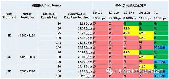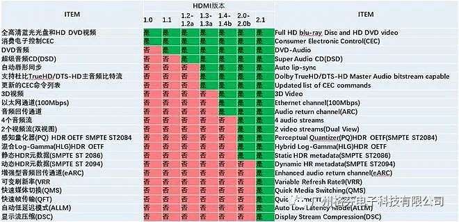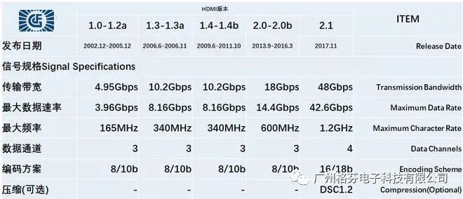 HDMI各版本的參數(shù)對(duì)比
