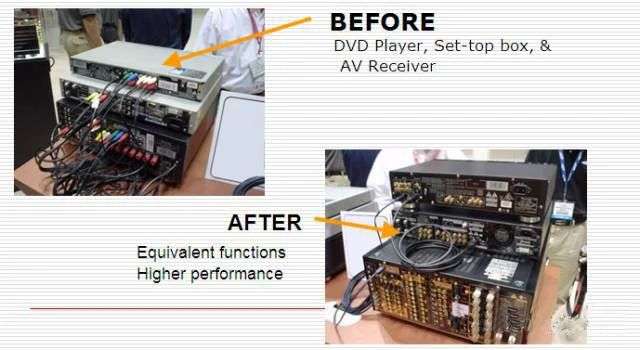 最早的 HDMI 版本,2002 年 12 月推出,可說(shuō)是專為當(dāng)年的 Blu-ray 等全高清軟件而設(shè),其最大特點(diǎn)是同時(shí)整合了影像和音頻傳輸,比起電腦上的 DVI、DisplayPort 純影像傳輸介面,更加適合影音器材使用,HDMI 1.0 已經(jīng)支持 DVD 及 Blu-ray 視訊,最高頻寬達(dá)到 4.95 Gbps,當(dāng)中 3.96 Gbps 用作傳輸視頻流,可以支持 1080/60p 或者UXGA 解析度:音頻方面支持 8 聲道的 LPCM 24bit/192kHz,換言之已經(jīng)播到多聲道 Hi-Res,在同期的線纜規(guī)格對(duì)比,實(shí)屬相當(dāng)之強(qiáng)。