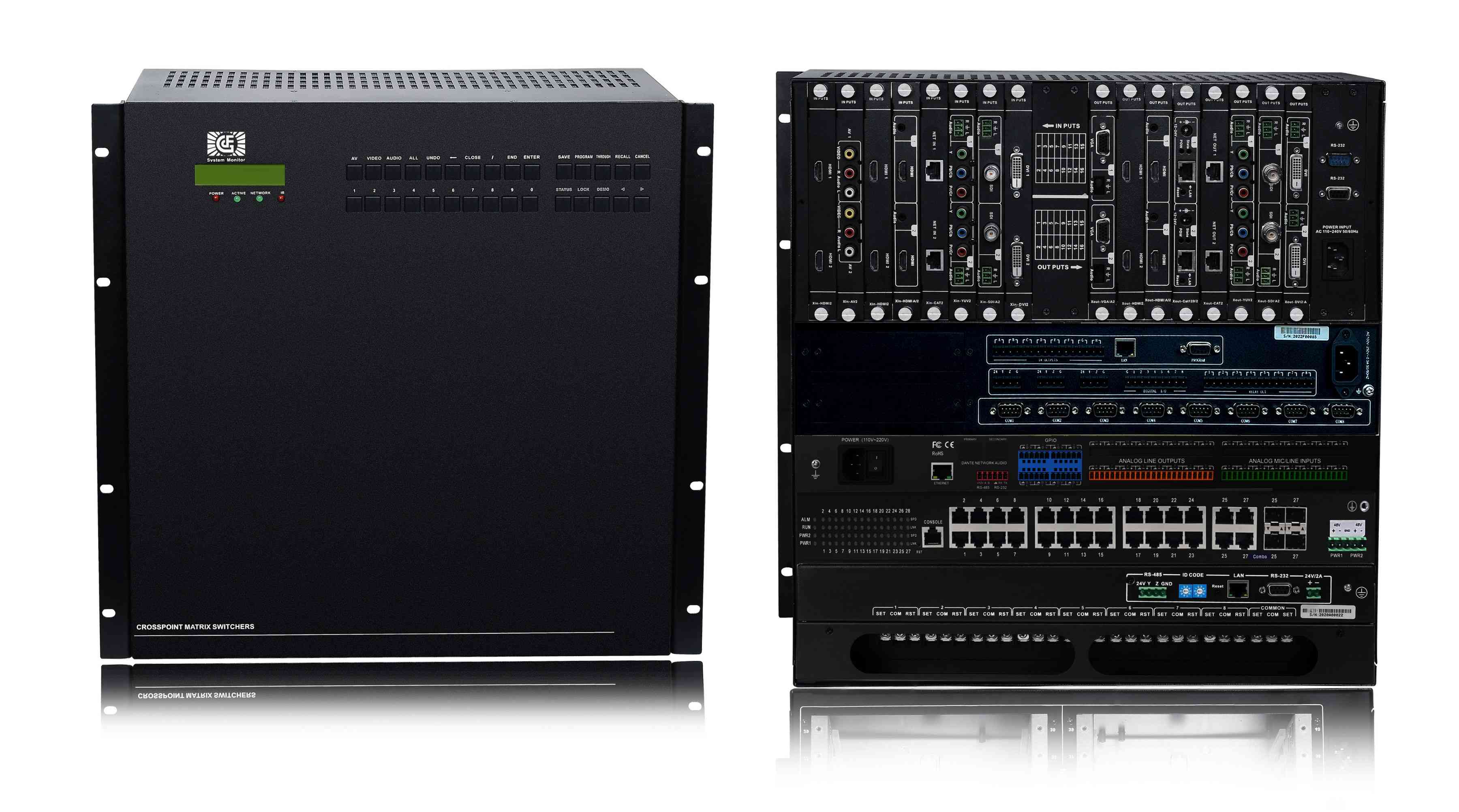 GF-MIX高清混合矩陣是一款高性能的視頻信號交換設備,采用大規(guī)模DSP+FPGA陣列式純硬件技術架構,無操作系統(tǒng),可避免工控系統(tǒng)死機、藍屏。完美支持超高清信號切換處理,在處理超高清分辨率時畫面流暢、配置靈活、運行穩(wěn)定。適用于指揮中心、廣播電視工程、展覽展示、多媒體會議室、多功能廳等場所。