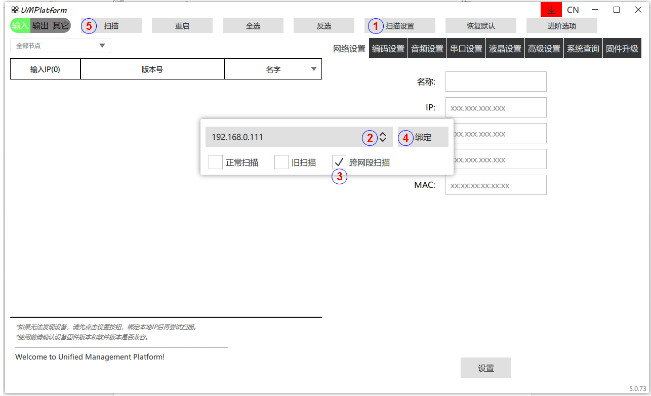 第四步:如發(fā)現(xiàn)有部分節(jié)點(diǎn)未掃描到,請(qǐng)按進(jìn)行步驟進(jìn)行跨網(wǎng)段掃描。