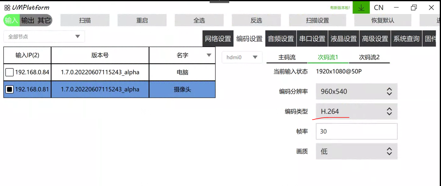 檢查節(jié)點(diǎn)參數(shù),音頻輸入模式根據(jù)實(shí)際情況設(shè)置HDMI輸入還是3.5mm(3pin鳳凰端子)輸入。其他參數(shù)無(wú)需修改。